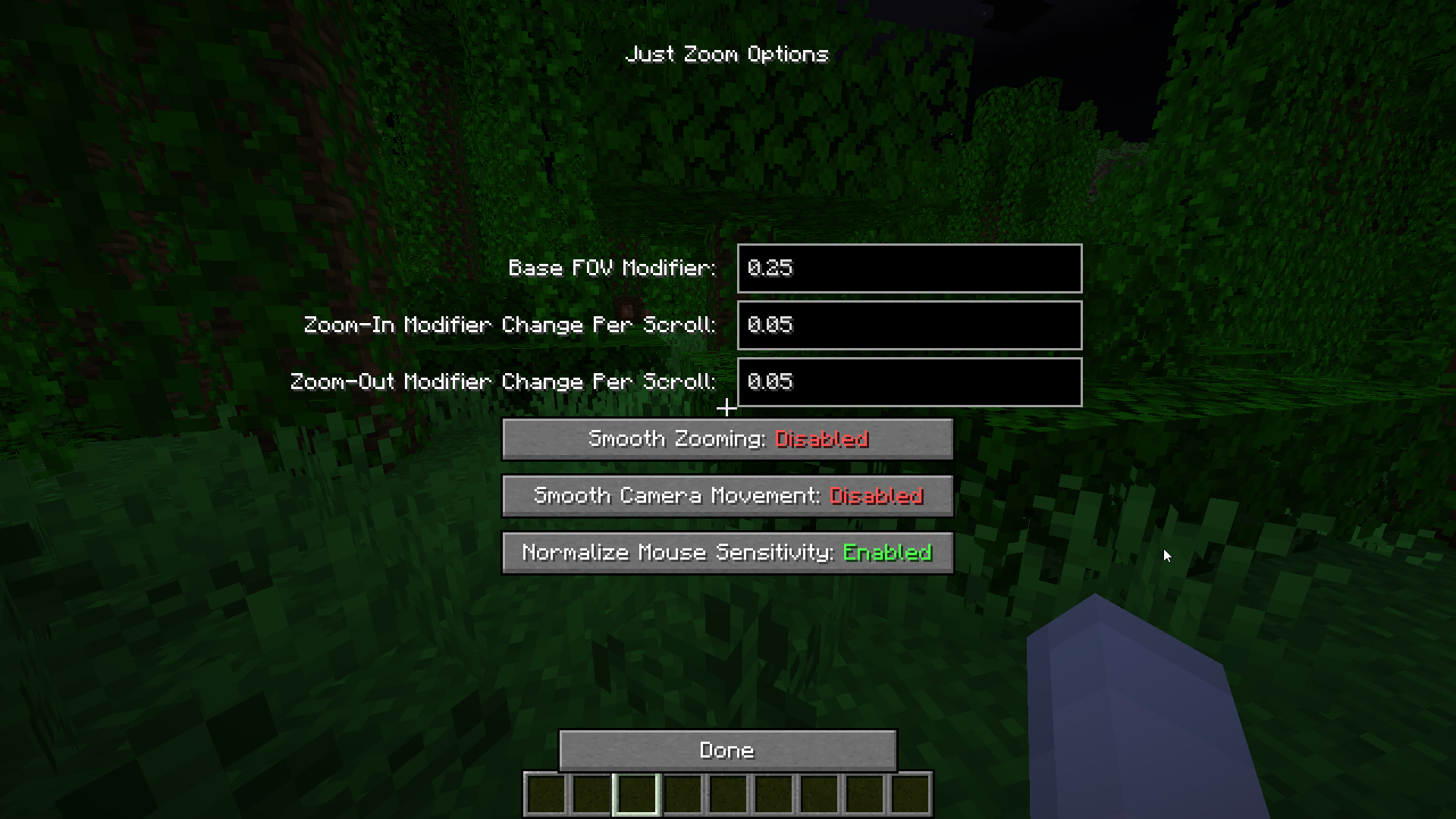 Just Zoom allows you to zoom by pressing a hotkey and adjust the zoom with your mouse wheel! It feels similar to zooming with the spyglass, but you can zoom in further and don’t have the black bars and spyglass overlay blocking your view!